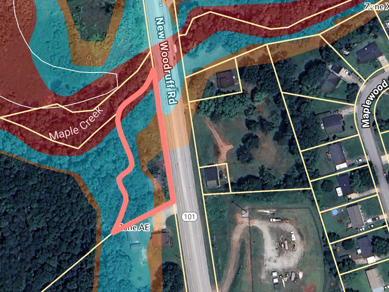 | Property Notes: | Prime opportunity on Hwy 101 with 283+- feet of frontage and an average daily traffic count of 12,200 vehicles per day (per SCDOT). This .745+- acre lot in Spartanburg County is strategically located just minutes from Greenville-Spartanburg International Airport, I-85, and downtown Greer. The property offers exceptional visibility and accessibility in a thriving growth corridor. The property includes a 930+- sf structure in need of a full renovation. Investors, business owners and developers alike will appreciate the high exposure location and versatile potential of this site. PORTION OF PROPERTY IN FLOOD ZONE. |